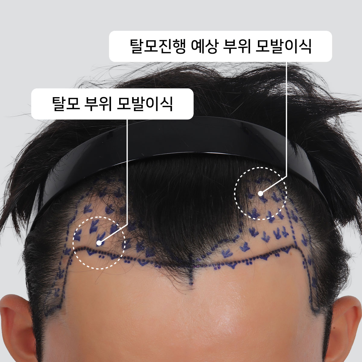 모발이식은 보이는 것만 보고 판단해서는 안 됩니다. 20~40대의 경우, 탈모 진행 속도가 빠르기 때문에 정확한 진단 없이 이식을 하면 2~3년 내에 재수술이 필요할 수 있습니다.